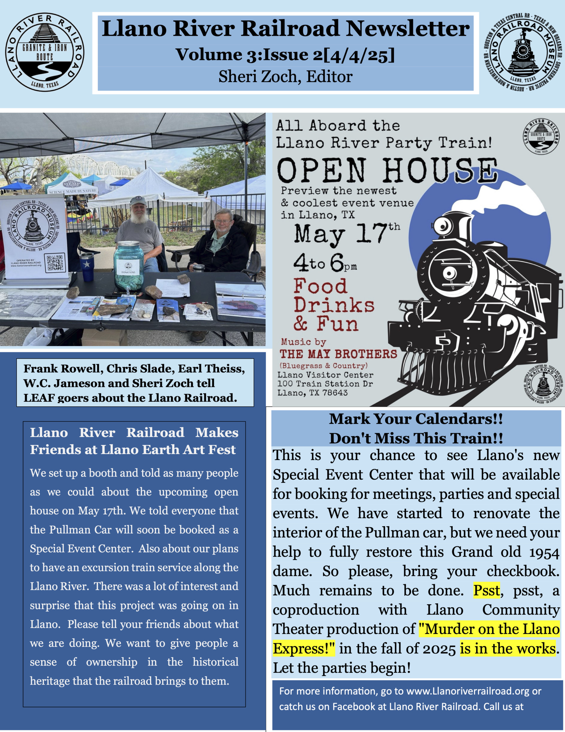 Stay up to date with news, events, and updates from the Llano River Railroad and Museum. Click any issue below to view or download it.